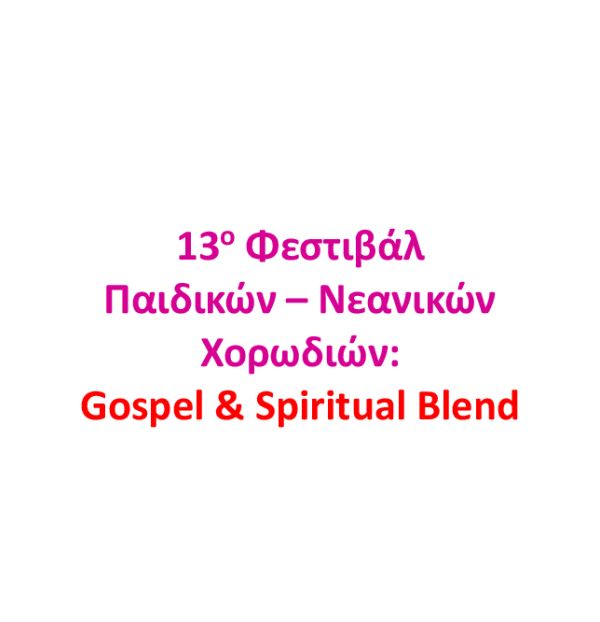 13ο Φεστιβάλ Παιδικών – Νεανικών Χορωδιών: Gospel & Spiritual Blend