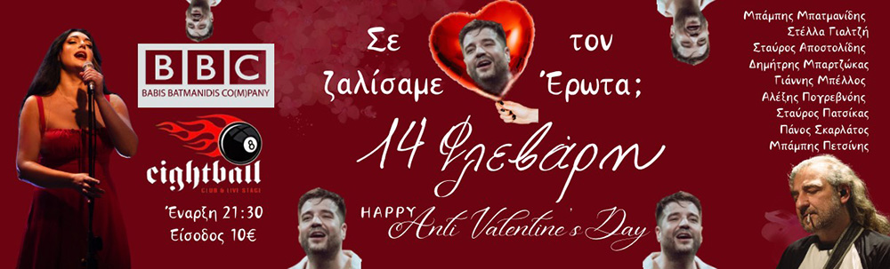 Ο τροβαδούρος του Έρωτα, ο Άγιος Βαλεντίνος των φτωχών ο φτερωτός Θεός από την Σταυρούπολη, στο live σταθμό για 14η χρονιά στο 8ball. Ο τελικός των τελικών που δεν πρέπει να χάσεις.