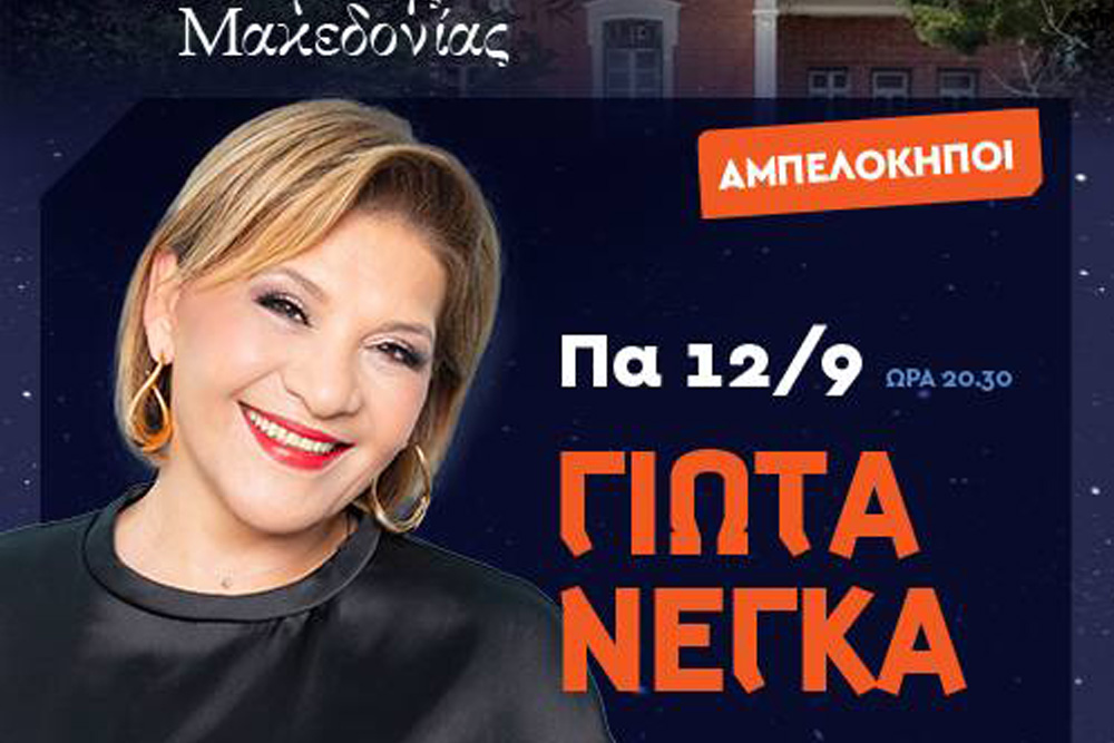 Γιώτα ΝέγκαΗ αυλαία ανοίγει με μια συναυλία – κατάθεση ψυχής από την κορυφαία ερμηνεύτρια Γιώτα Νέγκα, που θα μας ταξιδέψει με τραγούδια από την προσωπική της πορεία, αλλά και αγαπημένες δημιουργίες του ελληνικού λαϊκού και έντεχνου ρεπερτορίου.