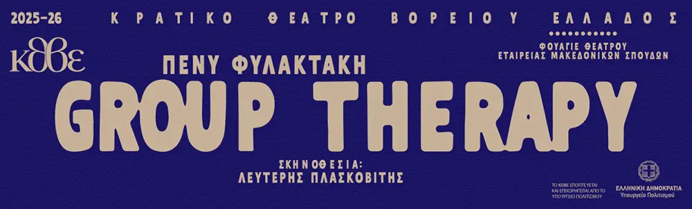 Group TherapyΜια κωμωδία που βασίζεται σε θέματα που απασχολούν τη σύγχρονη κοινωνία, είναι η νέα παραγωγή του Κρατικού Θεάτρου Βορείου Ελλάδος. Το «Group Therapy» της βραβευμένης Πένυς Φυλακτάκη, «ανεβαίνει», σε σκηνοθεσία Λευτέρη Πλασκοβίτη, το Σάββατο 2 Μάϊου στο Φουαγιέ του Θεάτρου της Εταιρείας Μακεδονικών Σπουδών, ψυχαγωγεί χωρίς να εκβιάζει το γέλιο των θεατών.
