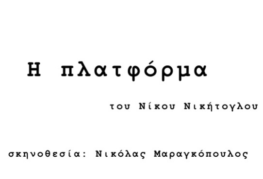 Η εταιρεία θέατρου αντίqρηση παρουσιάζει το έργο “Η Πλατφόρμα”, ένα σύγχρονο τρίπρακτο χωρίς «κουμπί επανεκκίνησης», του Νίκου Νικήτογλου, σε σκηνοθεσία Νικόλα Μαραγκόπουλου.
