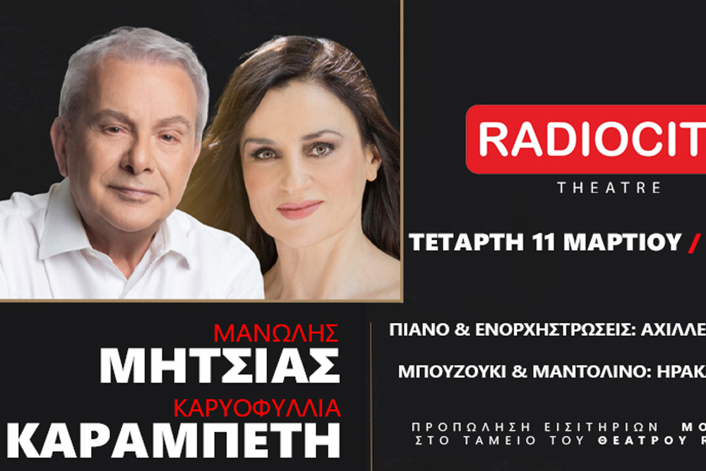 Μανώλης Μητσιάς - Καρυοφυλλιά ΚαραμπέτηΟ Μανώλης Μητσιάς συναντά επί σκηνής την Καρυοφυλλιά Καραμπέτη, σε μια ιδιαίτερη μουσική βραδιά στο Θέατρο Radio City, στη Θεσσαλονίκη.
