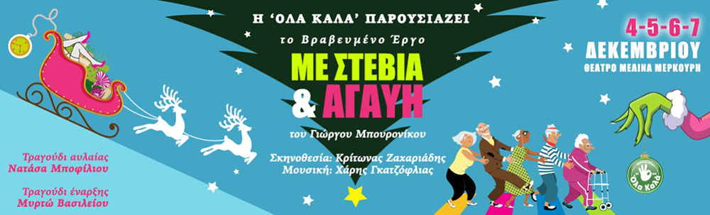 Η βραβευμένη θεατρική ομάδα Όλα – Καλά (Θεατρικά Βραβεία Θεσσαλονίκης 2024) μετά τα συνεχομένα sold out παρουσιάζει για δεύτερη χρονιά στο θεατρόφιλο κοινό της Θεσσαλονίκης την σπαρταριστή κωμωδία «Με Στέβια και Αγαύη» στο Θέατρο Μελίνα Μερκούρη, Καλαμαριάς.