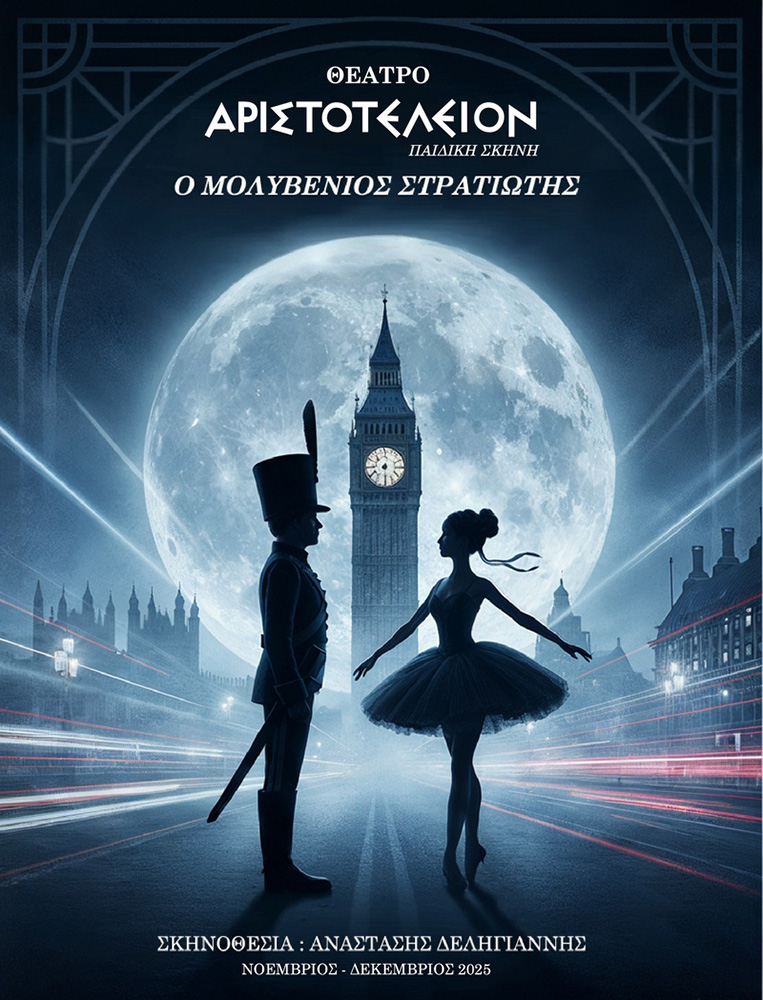Το Θέατρο «Αριστοτέλειον» παρουσιάζει φέτος το μαγευτικό μολυβένιο στρατιώτη σε μια πρωτότυπη θεατρική διασκευή και σκηνοθεσία του Αναστάση Δεληγιάννη. Θα ζωντανέψει η μαγευτική ιστορία γεμάτη μελωδίες και χορό, που θα μας οδηγήσει σε μια ιστορία γεμάτη συναισθήματα και αξίες που φωτίζουν τις γιορτινές μέρες.