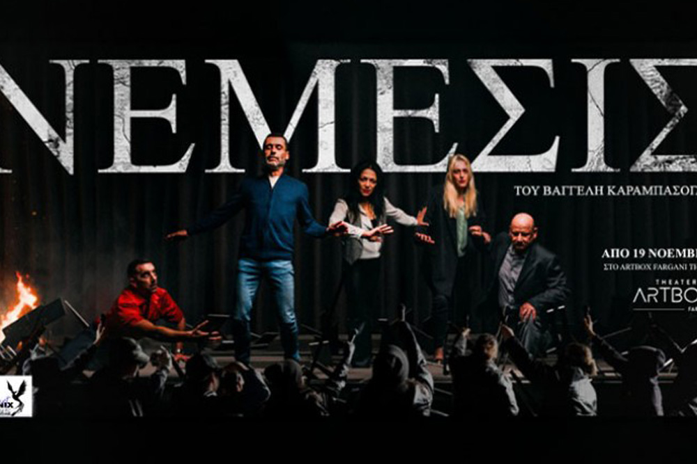 Η νέα παραγωγή της ArtPhoinix, με τίτλο «Νέμεσις», κάνει πρεμιέρα στις 19 Νοεμβρίου 2025 στο Artbox Φαργκάνη. Πρόκειται για ένα έργο που συνδυάζει τη σατιρική διάθεση με την κοινωνική κριτική, εξελίσσοντας την αφήγησή του από μαύρη κωμωδία σε δραματικό θρίλερ. Ο Βαγγέλης Καραμπάσογλου υπογράφει μια παράσταση αιχμηρή, τολμηρή και βαθιά ανθρώπινη, που κοιτάζει ευθέως την εποχή μας και τους μηχανισμούς που τη διαμορφώνουν.