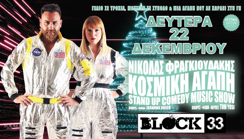 Η «Κοσμική Αγάπη» έρχεται στο Block 33 τη Δευτέρα 22 Δεκεμβρίου 2025! Ο Νικόλας Φραγκιουδάκης πιο αστείος, πιο μουσικός και πιο… αστρολογικός από ποτέ!