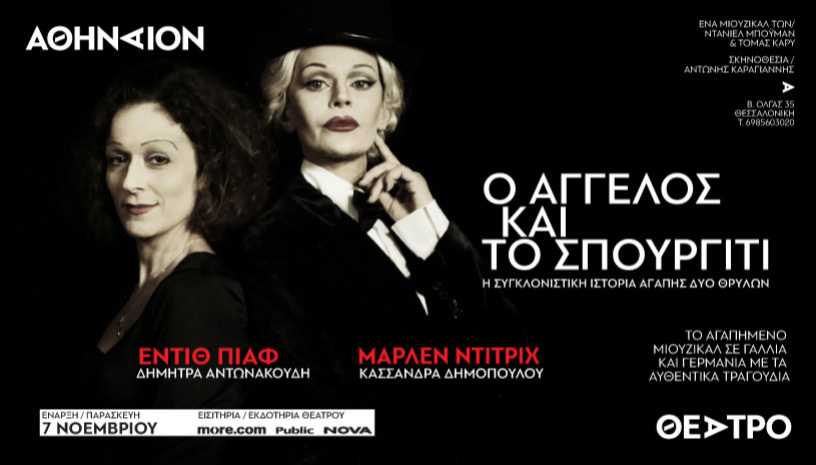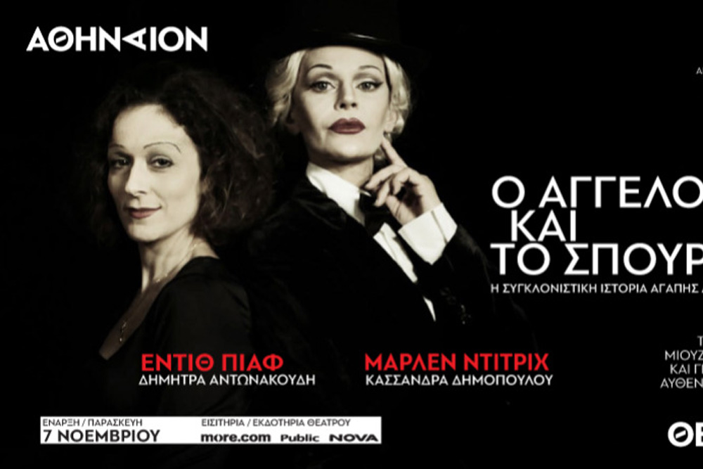 Το μιούζικαλ των Ντάνιελ Μπόυμαν και Τόμας Κάρυ «Ο Άγγελος και το σπουργίτι», ζωντανεύει για πρώτη φορά στην Ελλάδα σε σκηνοθεσία Αντώνη Καραγιάννη, στο ανανεωμένο Θέατρο Αθήναιον. Η ιστορία δύο γυναικών θρύλων με αντίθετα χαρακτηριστικά, που όταν συναντήθηκαν ενώθηκαν με μια σπάνια, αληθινή και μοναδική φιλία που άντεξε μέχρι το τέλος της ζωής τους. Το έργο παράλληλα φωτίζει και την αθέατη, σε πολλούς, σύντομη ερωτική τους σχέση. Μία σχέση που παρέμεινε σχεδόν αόρατη στο ευρύ κοινό μέχρι σήμερα.