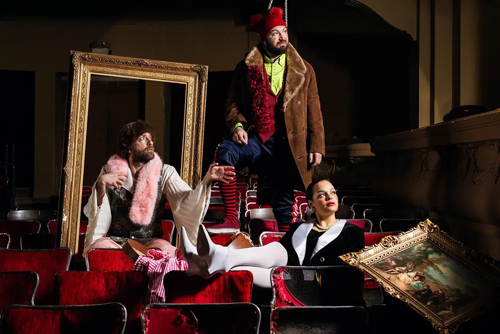 Δύο ηθοποιοί, ένας μουσικός και μία δημόσια υπάλληλος συνθέτουν ένα θέατρο που σταδιακά καταρρέει, μέσα από σκηνικές εικόνες που παραπέμπουν στην αισθητική των κλόουν και των παλιών μπουλουκιών.
