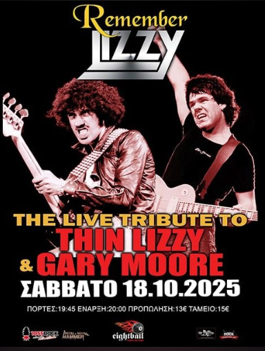 Οι Remember Lizzy, η θρυλική Ελληνική Thin Lizzy Tribute band, κλείνει 20 χρόνια δράσης στην ελληνική σκηνή και το γιορτάζει επιστρέφοντας στην λατρεμένη Θεσσαλονίκη στο αγαπημένο Eightball μετά από 9 χρόνια για ένα live γεμάτο Ιρλανδία, Ουίσκι και άρωμα Μαύρης Μπύρας.