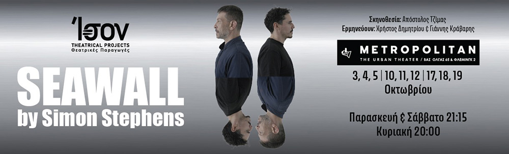 Το Sea Wall, του πολυβραβευμένου Βρετανού συγγραφέα Simon Stephens, αποτελεί έναν βαθιά προσωπικό και συγκλονιστικό θεατρικό στοχασμό πάνω στο εύθραυστο της ύπαρξης. Το έργο παρουσιάζεται για πρώτη φορά στην Ελλάδα, σε μια μοναδική θεατρική σύνθεση διάρκειας 1 ώρας και 20 λεπτών, που ενώνει δύο παράλληλους μονολόγους: δύο αντρικές εξομολογήσεις που διατρέχουν τα όρια της ζωής και του θανάτου.