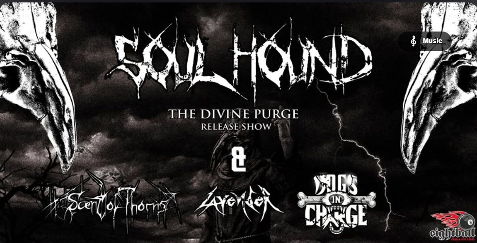 Το Σάββατο 8 Νοεμβρίου 2025 στο Eightball Club έρχεται το πρώτο Headline Live Show των Soulhound που θα παρουσιάσουν το Debut Album τους “The Divine Purge”, μαζί τους οι Scent of Thorns / Lavender & Dogs in Charge.