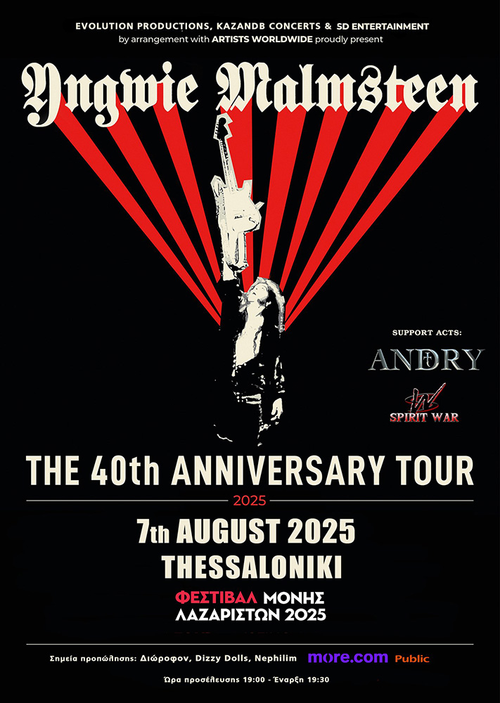 Ο Yngwie στα 40 (και βάλε) αυτά χρόνια, έχει προσφέρει πάνω από 20 προσωπικές κυκλοφορίες, είτε με στούντιο άλμπουμ, είτε με άλμπουμ διασκευών, είτε με το μεγάλο του επίτευγμα να κυκλοφορήσει με συμφωνική ορχήστρα το 1998. Αυτή ήταν και η χρονιά που ήρθε για μοναδική φορά στην πόλη της Θεσσαλονίκης για την προώθηση του “Facing The Animal”, με το Ελληνικό κοινό να βλέπει για 1η φορά τον Mats Leven, για τον οποίο η συνύπαρξη του με τον Yngwie αποτέλεσε μεγάλο “σχολείο” για τα μελλοντικά του βήματα. 27 ολόκληρα χρόνια μετά ο Yngwie επιστρέφει στη Νύφη του βορρά, ενώ έχει να έρθει στη χώρα μας γενικότερα από το 2001, πράγμα που δείχνει πόσο πολύ έχει λείψει από τους πολλούς φανατικούς οπαδούς που έχει στη χώρα μας, όπως και στο παγκόσμιο στερέωμα γενικότερα.